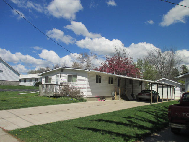 Very nicely updated modular, one level home. Just a short distance from downtown. Cute little patio in the back and a huge 17 x 36 carport. The house has newer windows, roof and siding. Clean garage, seldom used. Very nicely updated with wood trim and pine siding. Huge bath with jetted tub, full block basement with 2nd bath. Plenty of room for storage or whatever your needs are. Even a built in gun cabinet! You really need to come inside to appreciate this one! Inclusions: stove, refrigerator